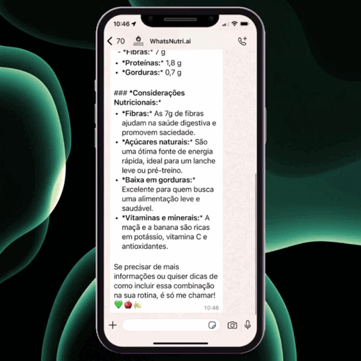Envie áudios ou textos sobre suas refeições e nossa IA reconhece os alimentos, incluindo produtos industrializados.