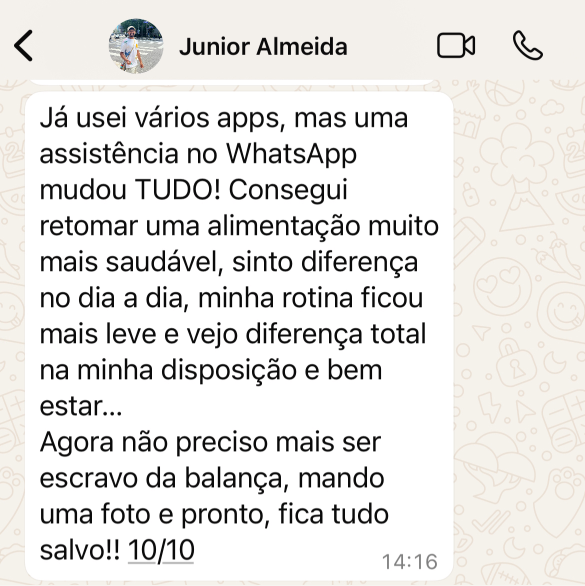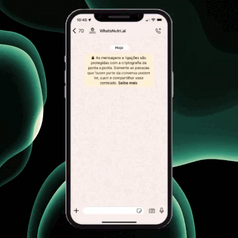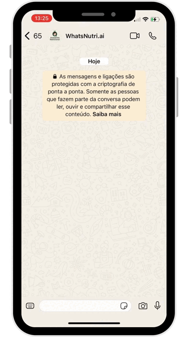 Envie uma foto, vídeo, áudio ou texto da sua refeição no WhatsApp.